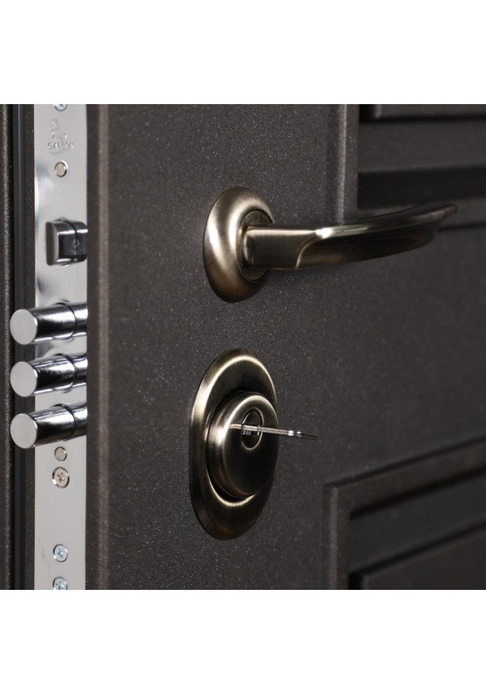 • Дополнительно: Евроцилиндр К-В перфокарта. Броненакладка врезная. Штырь противосъемный (3 шт.). Порог из нержавеющей стали (цвет "хром").