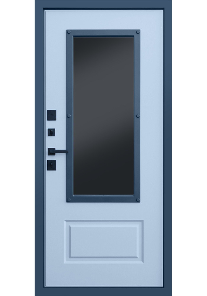 • Наружный лист металла: Лист металла 1,8 мм. Два слоя покрытия. Металлофиленки 2 шт. Двухкамерный тонированный стеклопакет. Английская решетка внутри стеклопакета. Наличники гладкие.